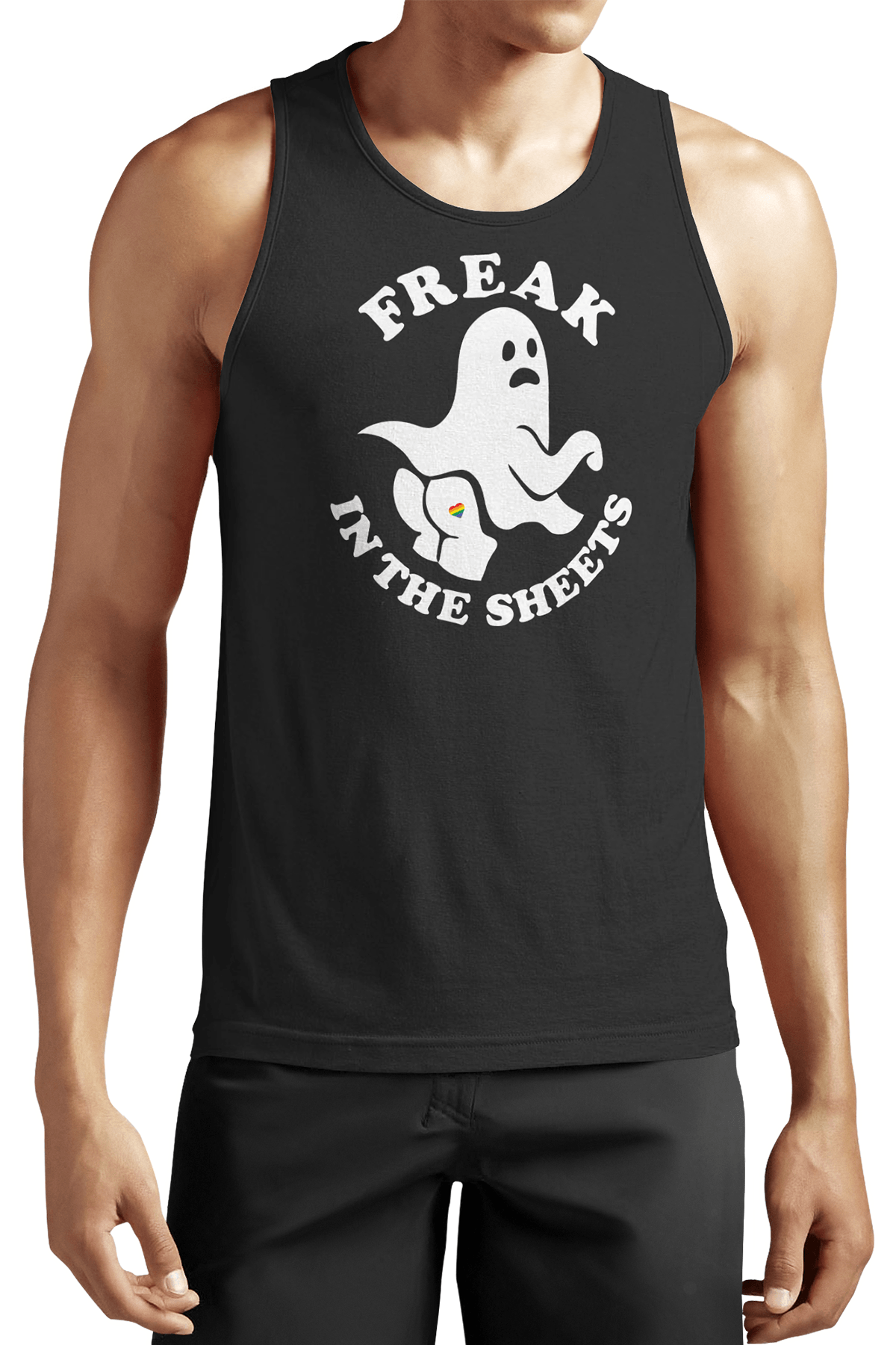 Looking for something to wear that will let your freak flag fly? This graphic tank top is perfect for you! It's Halloween-ready and says "I'm a freak in the sheets" - so you can be sure that everyone will know exactly what you're all about. Whether you're headed to a party or just out for a night on the town, this top will let you show off your naughty side in style. So go ahead and let your freak flag fly - with this LowTee tank top, you'll be sure to turn heads wherever you go!