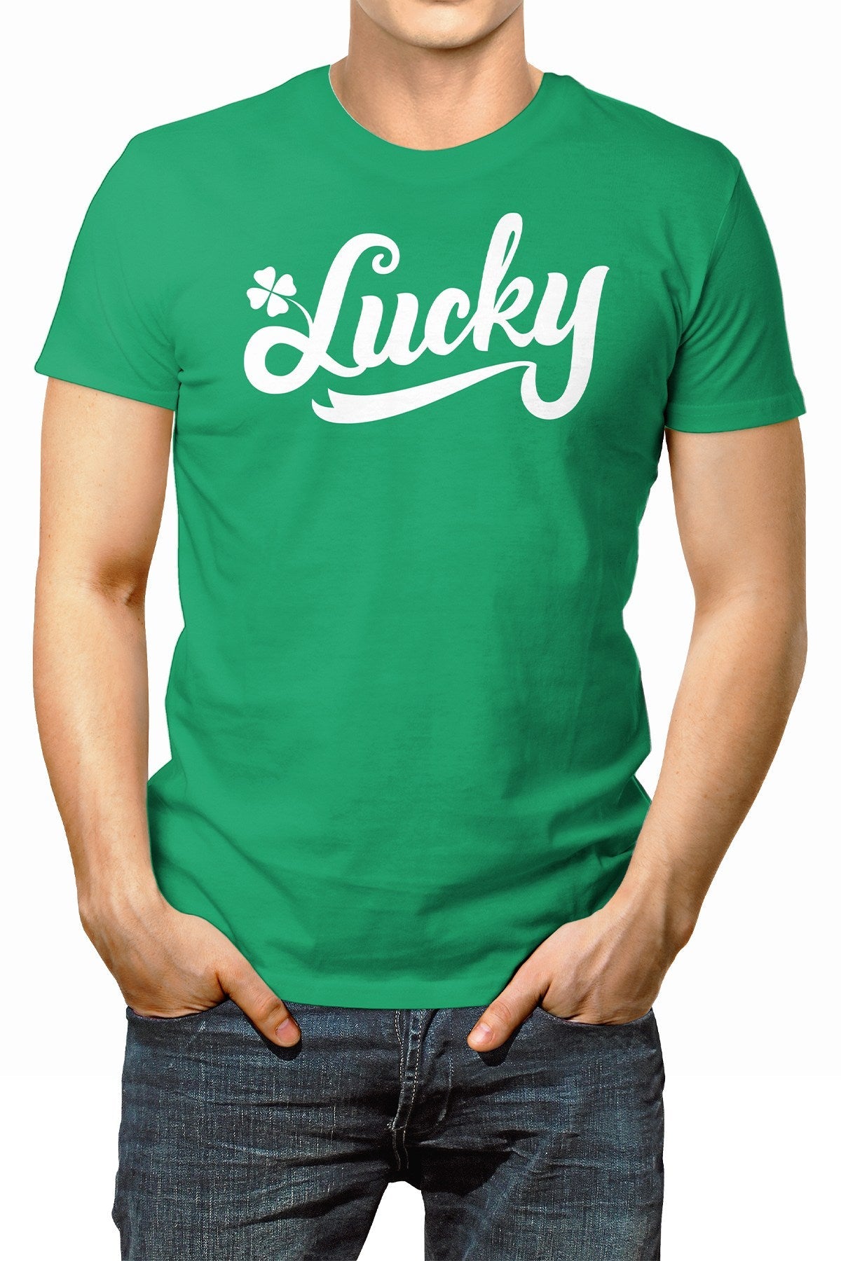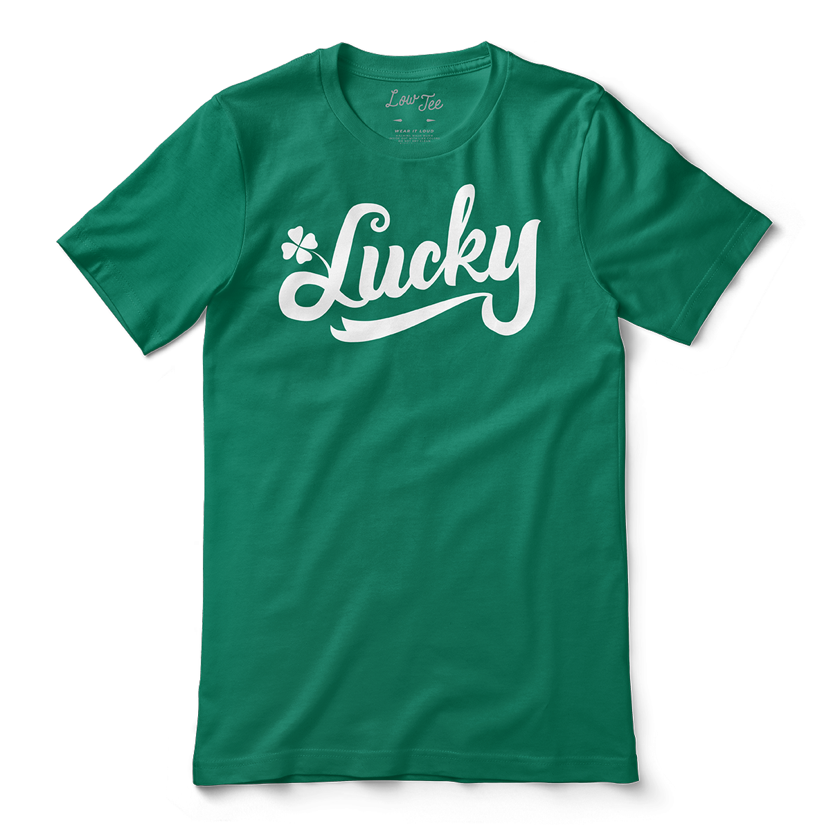 - Shirt features a Lucky Shamrock graphic across the chest