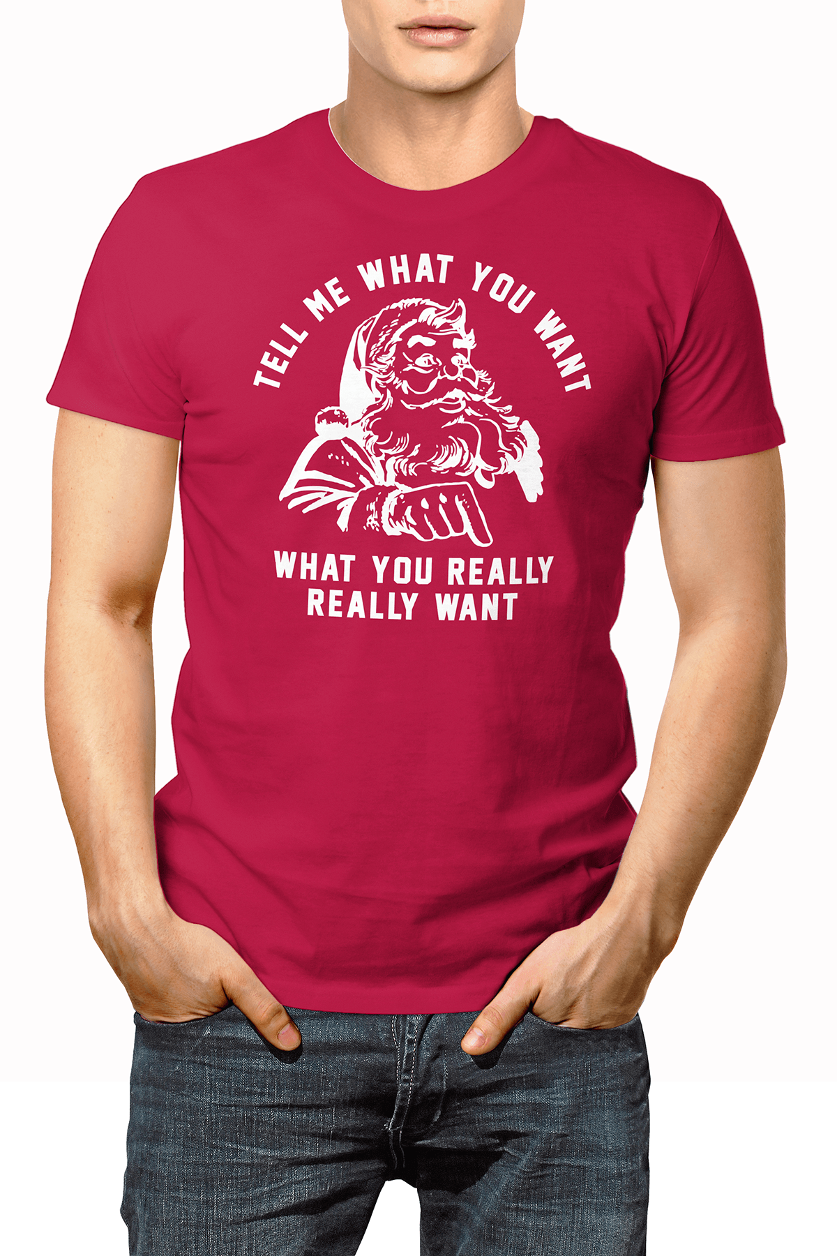Everyone loves the holidays - and why not have a bit of extra fun? Lowtee has come out with a limited edition Santa graphic shirt with a unique 'tell me what you want, what you really really want' design that is sure to bring a smile to everyone around. Made from 100% preshrunk cotton, it's snug as well as soft to give you maximum comfort whether worn for a special occasion or just for fun! It's time to drench yourself in some strong holiday vibes and enjoy the festivities with these naughty yet nice shirts!
